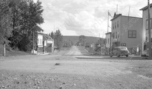 Scope & Content: Item consists of a view of Kalum Street including J. H. Smith, Silver Tip Cafe, Terrace Bakery, cars and mountains in the background. Handwritten annotation on recto of copy 2 reads: "Kalum. St. Terrace, B.C. 1947." Stamped annotation on verso of copy 2 reads: "Photo by Jack Wrathall Prince Rupert, B. C."