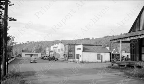 Scope & Content: Item consists of a view of Main Street including a cafe, Telkwa Hotel and vehicles. Handwritten annotation on recto of copy 3 reads; "Main St. Telkwa, B.C. 1960." Stamped annotation on verso of copies 2 and 3 reads: "Photo by Jack Wrathall Prince Rupert, B. C."
