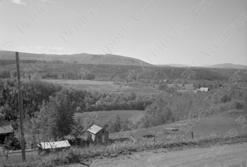 Scope & Content: Item consists of a view of Topley, B.C. from a hill including small log buildings and farms. Handwritten annotation on recto of copy 2 reads: "Topley, B.C. 1946." Stamped annotation on verso of copy 2 reads: "Photo by Jack Wrathall Prince Rupert, B. C."