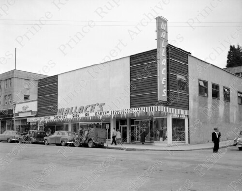 Title: Wallace's and Bulger's at the 400 Block of 3rd Avenue West at Prince Rupert, B.C. on June 24, 1952