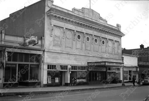 Scope & Content: Item consists of the 500 Block of 3rd Avenue West including the Capitol Theatre, Morgan's Men's Wear, Max Heilbroner Curios and Macey's Department Store. Handwritten annotation on recto of copy 2 reads: "500 Blk. 3rd. Ave. W. Prince Rupert. 1946." Stamped annotation on verso of copy 2 reads: "Photo by Jack Wrathall Prince Rupert, B. C."