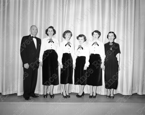 Title: Harry Black and Five Theatre Employees at the Opening of the Totem Theatre at Prince Rupert, B.C. in 1951