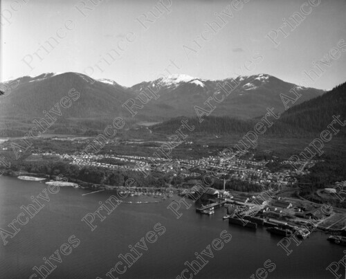 Title: Air View of Prince Rupert, B.C. in 1948 Including the Drydock and Rushbrook Floats