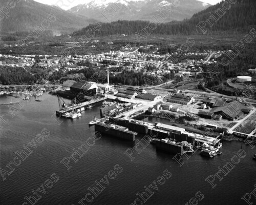 Title: Prince Rupert Drydock and Rushbrook Floats at Prince Rupert, B.C. in 1950