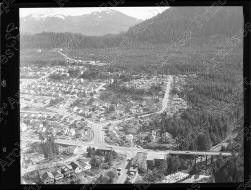 Title: Aerial View of Hays Creek Bridge, 6th Avenue, Hays Cove Avenue and Alfred Street to 11th Avenue at Prince Rupert, B.C. in 1963
