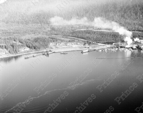 Scope & Content: Item consists of an aerial view of a ferry dock and Prince Rupert Fishermen's Co-op plant at Fairview Bay. Handwritten annotation on recto of copy 4 reads: "Ferry Dock. Pr. Rupert Fishermen's Co-op. 1965." Stamped annotation on verso of copy 4 reads: "Photo by Jack Wrathall Prince Rupert, B. C."