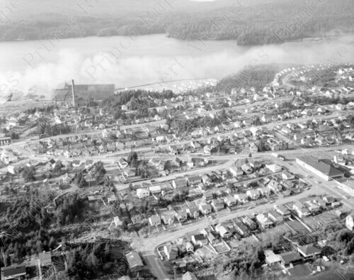 Title: Aerial View of Ambrose to 9th Avenue, Hays Cove Avenue and Conrad Street School at Prince Rupert, B.C. in 1965