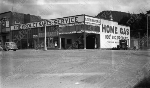 Title: Kaien Motors on 3rd Avenue West & 7th Street at Prince Rupert, B.C. in 1937