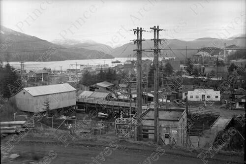 Scope & Content: Item consists of a view of Cow Bay Road including the B.C. Power House, Japanese Boat Building Sheds, Armstrong's Grocery and Prince Rupert Fisherman's Cooperative Association.