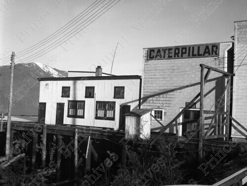 Scope & Content: Item consists of the Caterpillar building and another building on the dock at Cow Bay. Handwritten annotation on recto of copy 2 reads: "At Cow Bay. Pr. Rupert. 1945." Stamped annotation on verso of copies 2 and 3 reads: "Photo by Jack Wrathall Prince Rupert, B. C."
