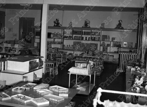 Scope & Content: Item consists of the interior of Gordon & Anderson Hardware Store at 336 3rd Avenue West showing a section with games and children's toys. Handwritten annotation on recto of copy 2 reads: "Lee Gordon - Gunnar Anderson. Gordon & Anderson Store. 336 - 3rd. Ave. W. Pr. Rupert. 1946." Stamped annotation on verso of copy 2 reads: "Photo by Jack Wrathall Prince Rupert, B. C."