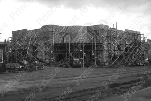 Title: Rupert Motors Under Construction at 2nd Avenue West and 1st Street at Prince Rupert, B.C. in 1947