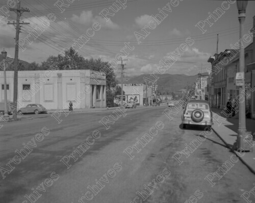 Scope & Content: Item consists of the 100 and 200 Blocks of 3rd Avenue West including the Government Liquor Store, Fraser & Payne, Totem Theatre, cars on the street and a pedestrian. Handwritten annotation on recto of copy 2 reads: "100-200 Blks - 3rd. Ave. W. Govt. Liquor Store. 1951." Stamped annotation on verso of copy 2 reads: "Photo by Jack Wrathall Prince Rupert, B. C."
