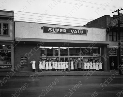 Title: Bill Sheardown & Bros. Super-Valu Staff at the 300 Block of 3rd Ave at Prince Rupert, B.C. in 1951