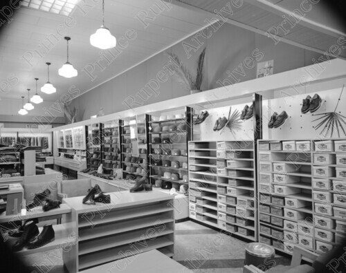 Scope & Content: Item consists of a view of the interior Wallace's Department Store showing the shoe department at 475 3rd Avenue West & Fulton Street. Handwritten annotation on verso of copy 2 reads: "Lewie Felsenthal. Prop. Wallace's Dept. Store. 475. 3rd. Ave & Fulton. St. 1952." Stamped annotation on verso of copy 2 reads: "Photo by Jack Wrathall Prince Rupert, B. C." Handwritten annotation on recto of copy 3 reads: "Interior Wallace Store. 1952. 3rd. Ave & Fulton St."