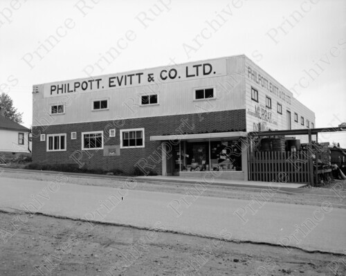 Scope & Content: Item consists of the exterior of Philpott, Evitt & Co. Ltd. on the 900 Block of 2nd Avenue West. Handwritten annotation on recto of copy 4 reads: "900 Blk. 2nd. Ave. W. Pr. Rupert. 1960." Stamped annotation on recto of copies 3 and 4 reads: "Photo by Jack Wrathall Prince Rupert, B.C."