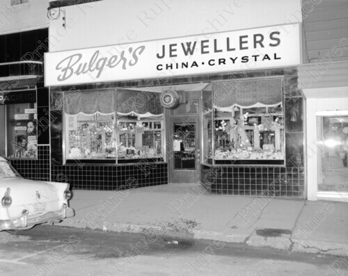 Scope & Content: Item consists of the exterior of Bulger's Jewellers on the 400 Block of 3rd Avenue West. Handwritten annotation on recto of copy 2 reads: "427 - 3rd. Ave. W. Prince Rupert B.C. 1963." Stamped annotation on verso of copies 2 and 3 reads: "Photo by Jack Wrathall Prince Rupert, B. C."