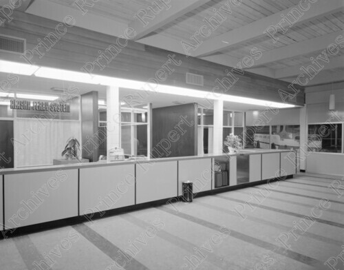 Scope & Content: Item consists of the interior of the Alaska Ferry System Office in Rupert Bus Line terminal at 2nd Avenue West and 7th Street. A bus can be seen outside the window on the right. Handwritten annotation on recto of copy 2 reads: "Alaska Ferry System Office in Rupert Bus Line. 2nd. Ave. & 7th. St. 1965." Handwritten annotation on verso of copy 3 reads: "Frasers. 1965." Stamped annotation on verso of copies 2 and 3 reads: "Photo by Jack Wrathall Prince Rupert, B. C."