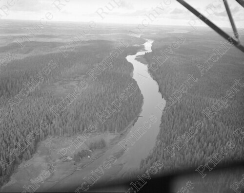 Scope & Content: Item consists of an aerial view of Long Inlet on Haida Gwaii. Handwritten annotation on recto of copy 2 reads: "Queen Charlotte Islands. 1955." Stamped annotation on verso of copy 2 reads: "Photo by Jack Wrathall Prince Rupert, B. C."