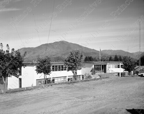 Scope & Content: Item consists of the exterior of the B.C. Forest Service building at Market Place. A house can be seen beside the B.C. Forest Service building and Mount Morse can be seen in the background. Handwritten annotation on recto of copy 2 reads: "B.C. Forest Service Bldg. Market Place. 1960. Pr. Rupert." Stamped annotation on verso of copies 2 and 3 reads: "Photo by Jack Wrathall Prince Rupert, B. C."