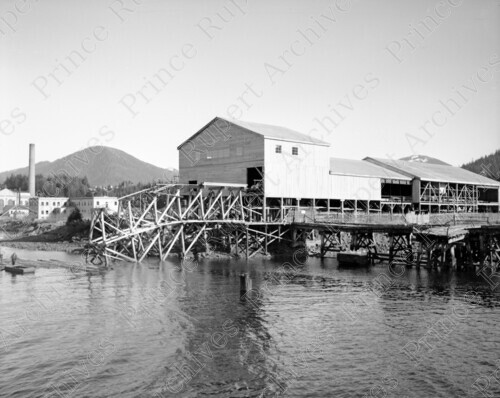 Scope & Content: Item consists of the exterior of the Prince Rupert Sawmill in Cow Bay with the Prince Rupert Drydock and Shipyard in the background. Handwritten annotation on recto of copy 2 reads: "P.R. Drydock. P.R. Sawmill. Cow Bay. Pr. Rupert. 1958." Stamped annotation on verso of copy 2 reads: "Photo by Jack Wrathall Prince Rupert, B. C."