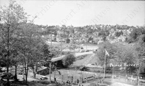 Title: McClymont Park and McBride Street Looking West at Prince Rupert, B.C. in 1948