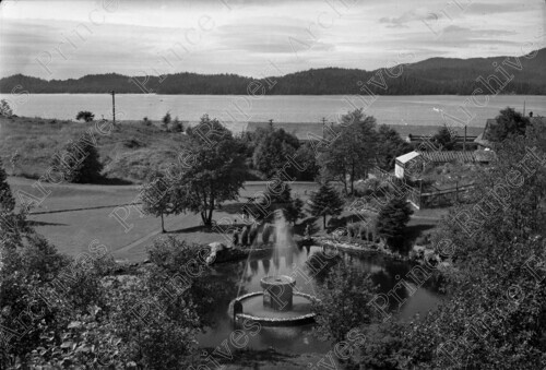Title: C.N. Fountain at C.N. Park with a View of the Harbour at Prince Rupert, B.C. in 1937