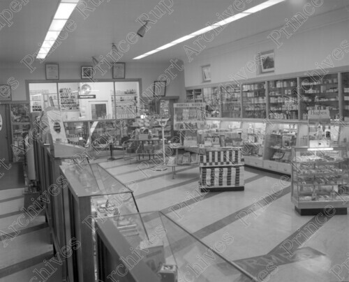 Scope & Content: Item consists of the interior of Orme's Drug Store at the corner of 501 3rd Avenue West and Fulton Street. Handwritten annotation on recto of copy 2 reads: "Orme's Drug Store. 3rd. Ave. & Fulton St. 1950." Handwritten annotation on recto of copy 3 reads: "Orme's Drug Store. 501 3rd. Ave. W. Pr. Rupert. 1950." Stamped annotation on verso of copy 3 reads: "Photo by Jack Wrathall Prince Rupert, B. C."