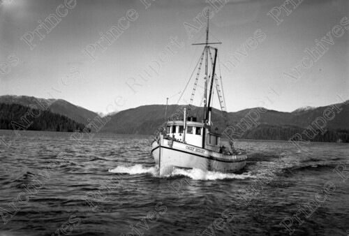 Scope & Content: Item consists of the Canadian Fish & Cold Storage halibut boat "Chief Seegay" in the Prince Rupert harbour. Handwritten annotation on recto of copy 2 reads: "Canadian Fish & Cold Storage Boat. 1945." Stamped annotation on verso of copy 2 reads: "Not to be Reproduced or Published Without Authority of Wrathall's Photo Finishing Prince Rupert, B. C." Handwritten annotation on recto of copy 3 reads: "Chief Seegay."