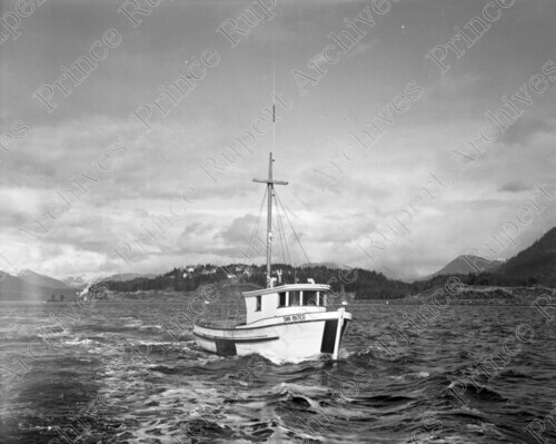 Scope & Content: Item consists of the fishing boat "San Mateo" in the harbour. Handwritten annotation on recto of copy 2 reads: "San - Mateo. 1950." Stamped annotation on verso of copy 2 reads: "Not to be Reproduced or Published Without Authority of Wrathall's Photo Finishing Prince Rupert, B. C. Photo by Jack Wrathall Prince Rupert, B. C."