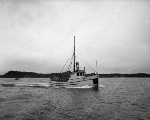 Scope & Content: Item consists of the halibut boat "Oslo" in the Prince Rupert Harbour. Handwritten annotation on recto of copy 2 reads: "1952." Stamped annotation on verso of copy 2 reads: "Photo by Jack Wrathall Prince Rupert, B. C."