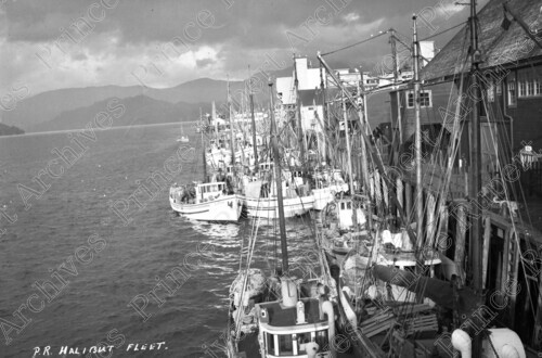 Title: Prince Rupert Halibut Fleet at Fish Dock at Prince Rupert B.C. in 1948
