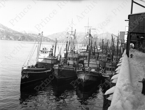 Title: Herring Fleet at Fish Dock at Prince Rupert, B.C. in 1945