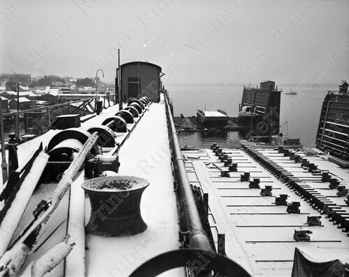 Title: "Clipper II" Moored to Pontoons at the Prince Rupert Drydock and Shipyard at Prince Rupert, B.C. in 1954