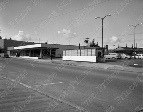 Scope & Content: Item consists of the exterior of Prince Rupert Fishermen's Co-op Store on the 100 block of 3rd Avenue West. Cars can be seen parked outside. Handwritten annotation on recto of copy 2 reads: "Pr. Rupert Fishermen's Co-op Centre. 100 Blk. 3rd. Ave. W. 1958." Stamped annotation on verso of copy 2 reads: "Photo by Jack Wrathall Prince Rupert, B. C."