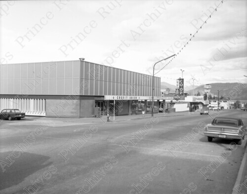 Title: Credit Union and Co-op Hardware on the 100 Block of 3rd Avenue West in Prince Rupert, B.C. on October 27, 1967