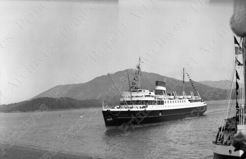 Scope & Content: Item consists of the S.S. "Prince George" in the Prince Rupert harbour. Mount Morse can be seen in the background. Handwritten annotation on recto of copy 2 reads: "S.S. Prince George (New One). Rupert Harbour. 1938." Stamped annotation on verso of copy 2 reads: "Photo by Jack Wrathall Prince Rupert, B. C."