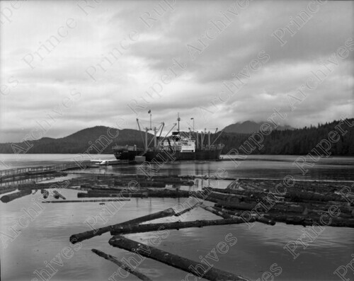 Scope & Content: Item consists of the freighter "Asia Maru" loading logs in Tuck Inlet. The "Asia Maru" was from Tokyo. Handwritten annotation on recto of copy 2 reads: "Asia Maru. From Tokyo. Loading Logs. Oct - 1964. Near Pr. Rupert." Stamped annotation on verso of copy 2 reads: "Photo by Jack Wrathall Prince Rupert, B. C."