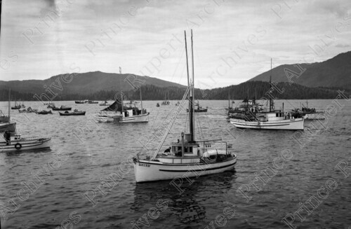 Scope & Content: Item consists of various fishing boats including the "Success," "Tramp" and "Four Forty" in a harbour (the Prince Rupert harbour?). Handwritten annotation on recto of copy 3 reads: "1946 - Fish Boat in Harbour Success. Tramp. Four Forty." Stamped annotation on verso of copies 2 and 3 reads: "Photo by Jack Wrathall Prince Rupert, B. C."
