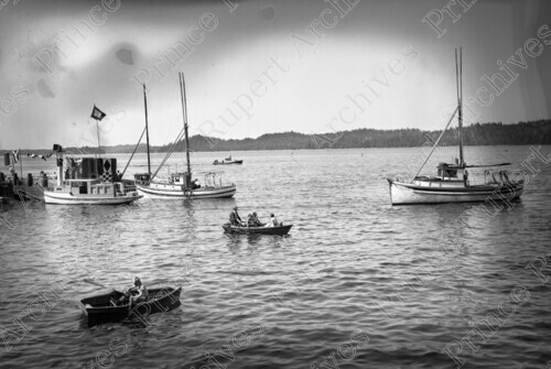 Scope & Content: Item consists of boats in the harbour on Port Day. The boats pictured include the "Success" and others. Handwritten annotation on recto of copy 2 reads: "Port Day. Pr. Rupert. 1946." Stamped annotation on verso of copy 2 reads: "Photo by Jack Wrathall Prince Rupert, B. C."