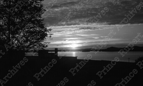 Scope & Content: Item consists of a view from CN Park of a sunset over the Prince Rupert harbour. Handwritten annotation on recto of copy 4 reads: "Pr. Rupert Harbour. Sunset. 1954." Stamped annotation on verso of copy 4 reads: "Photo by Jack Wrathall Prince Rupert, B. C."