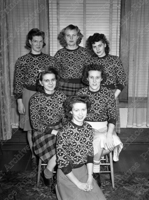 Scope & Content: Item consists of six members of the Moose Girls bowling team posing in a living room at an unknown location. Handwritten annotation on recto of copy 2 reads: "Moose Girls Bowling Team. Mar. 27 - 1946."