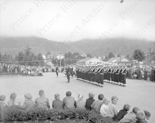 Title: Raising of Centennial Flag At Courthouse. Pr. Rupert, B.C. April 27, 1958