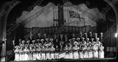 Scope & Content: Item consists of the cast from opera H.M.S. Pinafore posing on the stage at the Capitol Theatre. Handwritten annotation on recto of copies 2 and 3 reads: "Play at Capitol Theatre. "Pinafore." 1939." Stamped annotation on verso of copies 2 and 3 reads: "Photo by Jack Wrathall Prince Rupert, B. C."