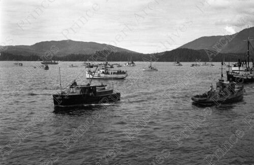 Title: Boats at Port Day in Prince Rupert, B.C. in 1951