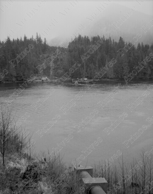 Scope & Content: Crew and equipment laying water new pipeline across Shawatlans Lake
