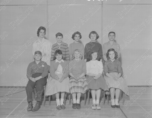 Title: Nine Students and a Teacher at Booth Memorial High School at Prince Rupert, B.C. in 1959