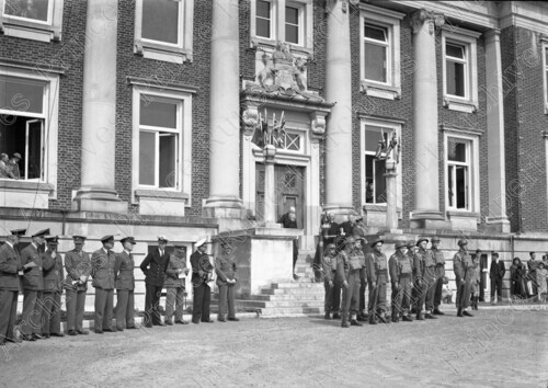 Title: 102nd Battalion in Front of Courthouse at Prince Rupert, B.C. in 1938