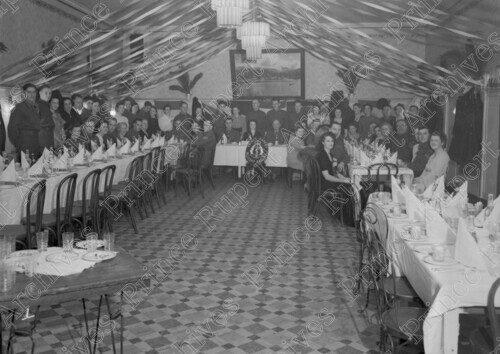 Scope & Content: Item consists of a large group of people at the Commodore Cafe for the Prince Rupert Military Hospital Staff Dinner. Handwritten annotation on recto of copy 2 reads: "Pr. Rupert Military Hospital Staff. Dinner at Commodore Cafe. 1945." Stamped annotation on verso of copy 2 reads: "Photo by Jack Wrathall Prince Rupert, B. C."