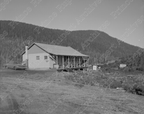 Scope & Content: Item consists of the exterior of the Prince Rupert Rod and Gun Club with a car parked next to it and a tree covered hill in the background. Handwritten annotation on recto of copy 2 reads: "Rod & Gun Club. At Oliver Lake. Pr. Rupert, B.C. 1962." Stamped annotation on verso of copy 2 reads: "Photo by Jack Wrathall Prince Rupert, B. C."